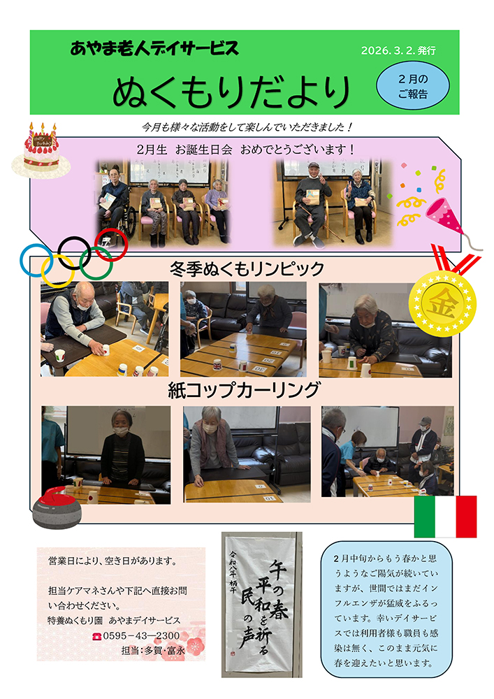 「ぬくもりだより」3月号を公開しました。